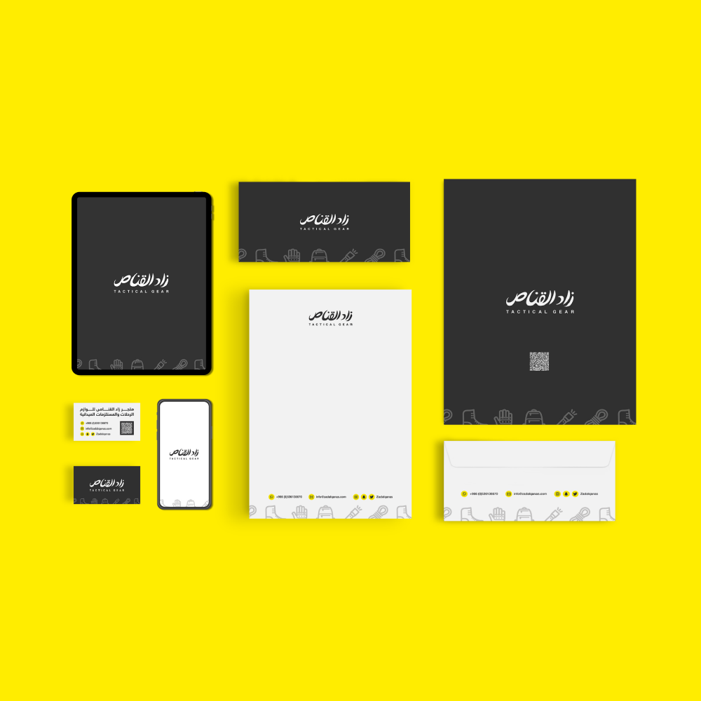 شعار وهوية زاد القناص، متجر تكتيكي متميز بمنتجات ذات اعتمادية عالية